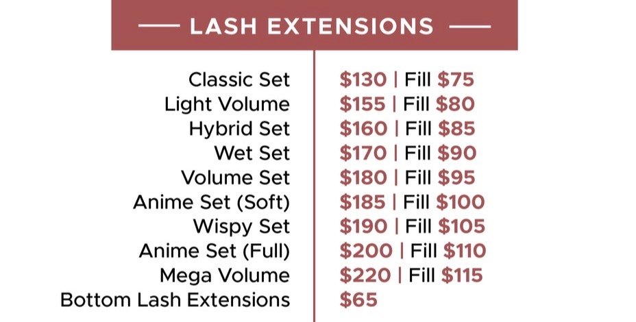Our Hybrid/Light Volume lashes combine classic and volume styles for a fuller, more textured look that’s perfect for everyday elegance. Fill: $85 (1hr 30min).